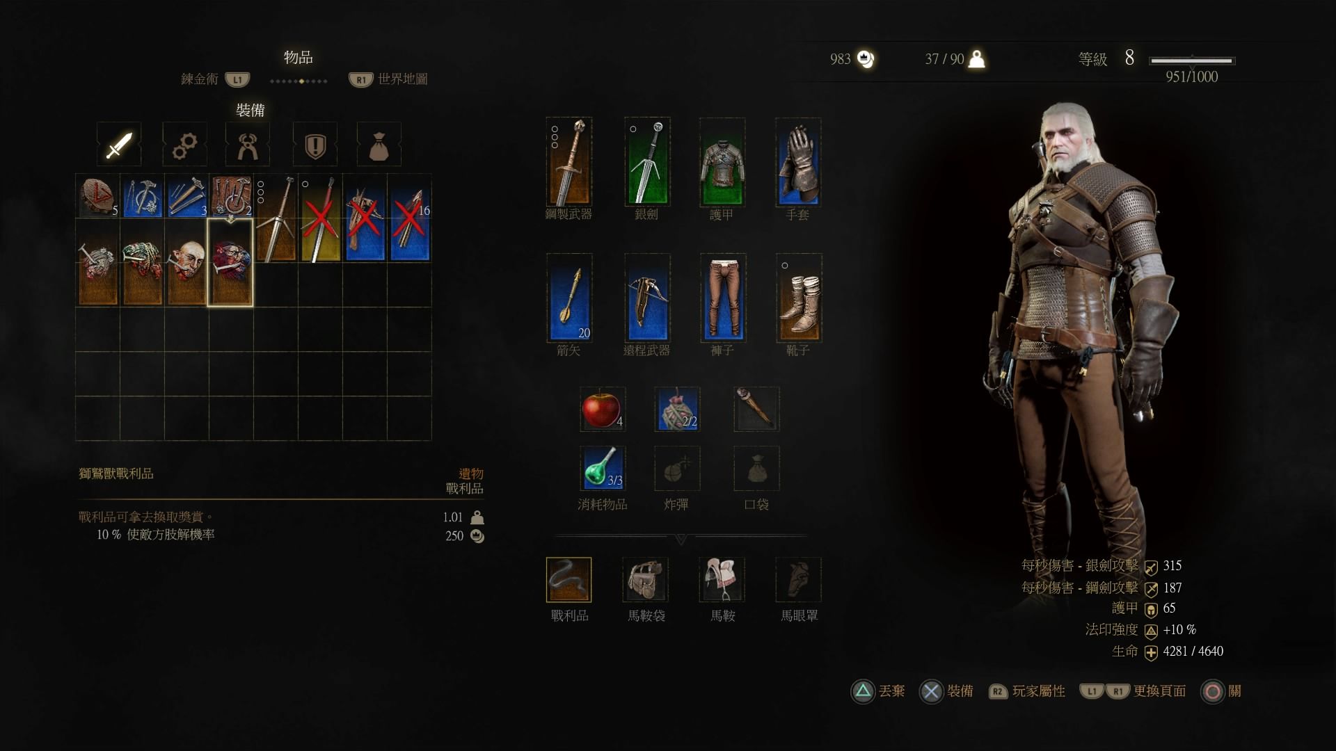 Pizza Hime 发布于五月 20, 2015 发布于五月 20, 2015 · 只看该作者 虽然买了限定版, 可惜我提前回国了,只能让朋友拍张照。 说好的一起装逼,最后都被他一个人装了。 干! 这下倒好,让他一个人变成了双版本限定的情怀选手。 http://i1176.photobucket.com/albums/x332/qweion/collector_zpsjruruyc3.jpg~original[/img] {:8_540:} 进度报告 我现在的进度还算不错, 已经升到17级,武器锻造大师已经解锁,护甲大师打算在20级去做掉装备任务。 http://i1176.photobucket.com/albums/x332/qweion/_zpslc9hdvmq.jpg~original[/img] 装备选择 个人选择的是猫学派的轻甲流,配合猫学派技能,暴击率和伤害都算不错,这一周目打算就用轻甲攻略掉了。 因为狩魔猎人类的装备可以再次升级,所以非常推荐大家都至少在身上准备一套。 我个人是做了猫学派和狮鹫学派两套套装。 猫学派注重速攻和暴击。 狮鹫学派注重平均以及刻印能力 熊学派靠的是防御力和重击。 ↓ 下图为初级猫学派装备,明天大概就能做出高级版。 http://i1176.photobucket.com/albums/x332/qweion/_zps6zap3ei9.jpg~original[/img] ↓ 高级狮鹫学派套装 http://i1176.photobucket.com/albums/x332/qweion/_zps5rnzwkgj.jpg~original[/img] 武器选择 前期还是以武器白值(攻击力)为主比较好 钢剑 比较关键的属性是穿甲,一把穿甲40+的钢剑,对付人类敌人绰绰有余。 最实用的异常状态是眩晕,7%的眩晕率可以强行越级杀死人类敌人。(17级的我,轻松完成了24级的武器大师任务) 其次,点燃属性的钢剑也是不错的选择。 http://i1176.photobucket.com/albums/x332/qweion/_zps91bs597c.jpg~original[/img] 银剑 银剑没有提多关键的属性,上油才是关键。 最实用的异常状态是冻结,有效对付食尸类的敌人。 注目: 史上最SB的银剑 对人暴击率提升 你怎么不去投胎做钢剑啊? http://i1176.photobucket.com/albums/x332/qweion/_zpse9q98pd5.jpg~original[/img] 十字弩 还有人用这玩意? http://i1176.photobucket.com/albums/x332/qweion/_15_zpsvomc4wbi.jpg~original[/img] 关于打架 我是完全不用迷惑刻印和护盾刻印 http://i1176.photobucket.com/albums/x332/qweion/_7_zpsil6sthae.jpg~original[/img] 陷阱刻印 是对付灵体敌人以及吸血鬼类敌人的关键技能,可以升级一下延长时效的技能。 不放陷阱的话,对手会一直保持灵体状态。 http://i1176.photobucket.com/albums/x332/qweion/_8_zpslitcbvqa.jpg~original[/img] 喷火 特色技能 不学是人? 对付人类敌人极强,也很适合对付食尸敌人。 瞬发效果可以把在空中准备攻击你的龙族和海妖打下来,非常棒。 http://i1176.photobucket.com/albums/x332/qweion/_3_zps2wsqemld.jpg~original[/img] 我最喜欢用永恒之火的方式对付那些永恒之火教徒。 (请无视那个被绑起来的孩子) http://i1176.photobucket.com/albums/x332/qweion/_4_zpstrwwflz5.jpg~original[/img] 喜欢看断头 肢解的人, 可以在马上挂上狮鹫兽,石化鸡蛇之类的战利品,触发率非常高。 http://i1176.photobucket.com/albums/x332/qweion/_zpsekpb57o7.jpg~original[/img] http://i1176.photobucket.com/albums/x332/qweion/_10_zpsg10ts0ig.jpg~original[/img] http://i1176.photobucket.com/albums/x332/qweion/_4_zpswq3bg38k.jpg~original[/img] ↓ 巫师3的魅魔 ↓ http://i1176.photobucket.com/albums/x332/qweion/_zpsxijoxh1y.jpg~original[/img] 惯例福利: 今晚找小姐 [hide] 然而大姐姐并不理我, “你这个年纪招妓不会太老了点吗?” http://i1176.photobucket.com/albums/x332/qweion/_zpsnxiarff5.jpg~original[/img] [/hide] 以上, 祝大家,买买买买买,再见 @sink981 @watashilolicon @逝去王女 @YoYo子 @h2333065 @逆推的骡子 @sandroaep @雪落花开 @XerxesBreak @wqx1414 @逝去王女 @yunguolong @鑢七花 @三千院基佬 @风景师